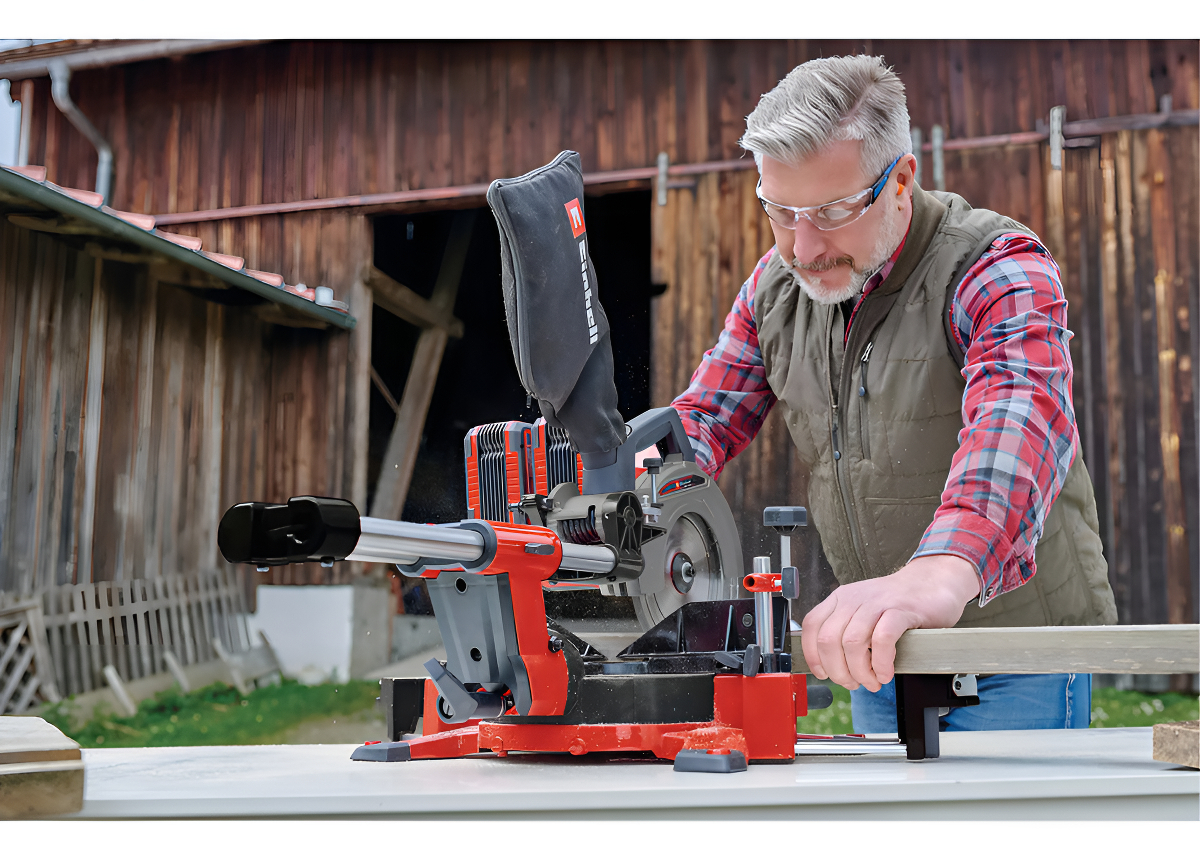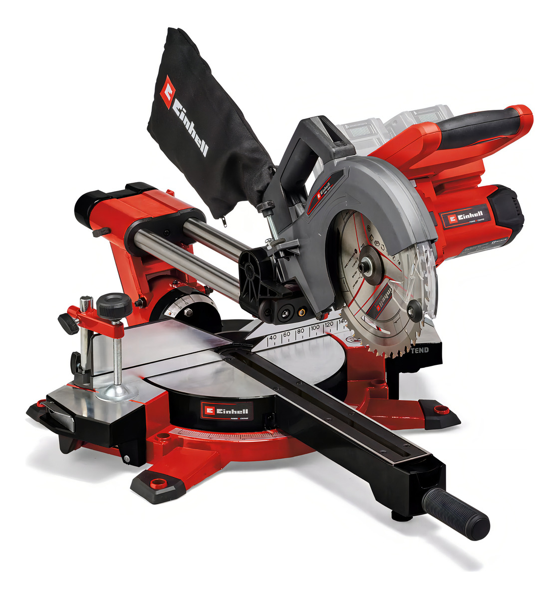 Cabezal de sierra inclinable hasta 45º hacia la izquierda para cortes a inglete