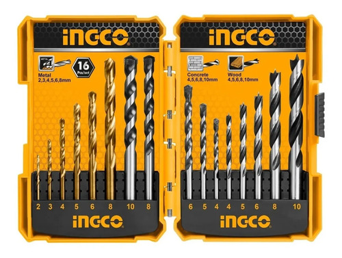 Juego 16 Mechas Metal/ Madera/ Concreto Ingco Akd9165 Tyt