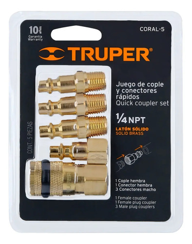 Juego 4 Conectores Y 1 Cople Compresor Aire Truper 19081