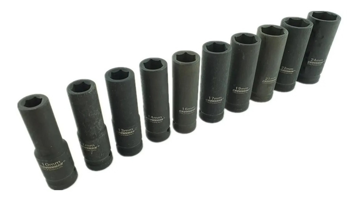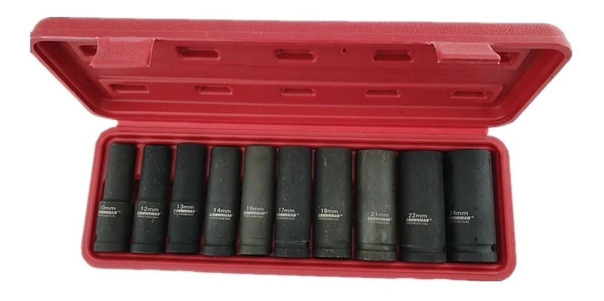 Juego Caja Dados Impacto 1/2 Pulgada 10 Piezas Crownman Negro cantidad