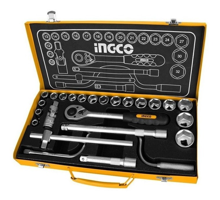 » JUEGO DADOS TUBO LLAVE 24 PCS 1/2″ CRIQUE + VALIJA METALICA «