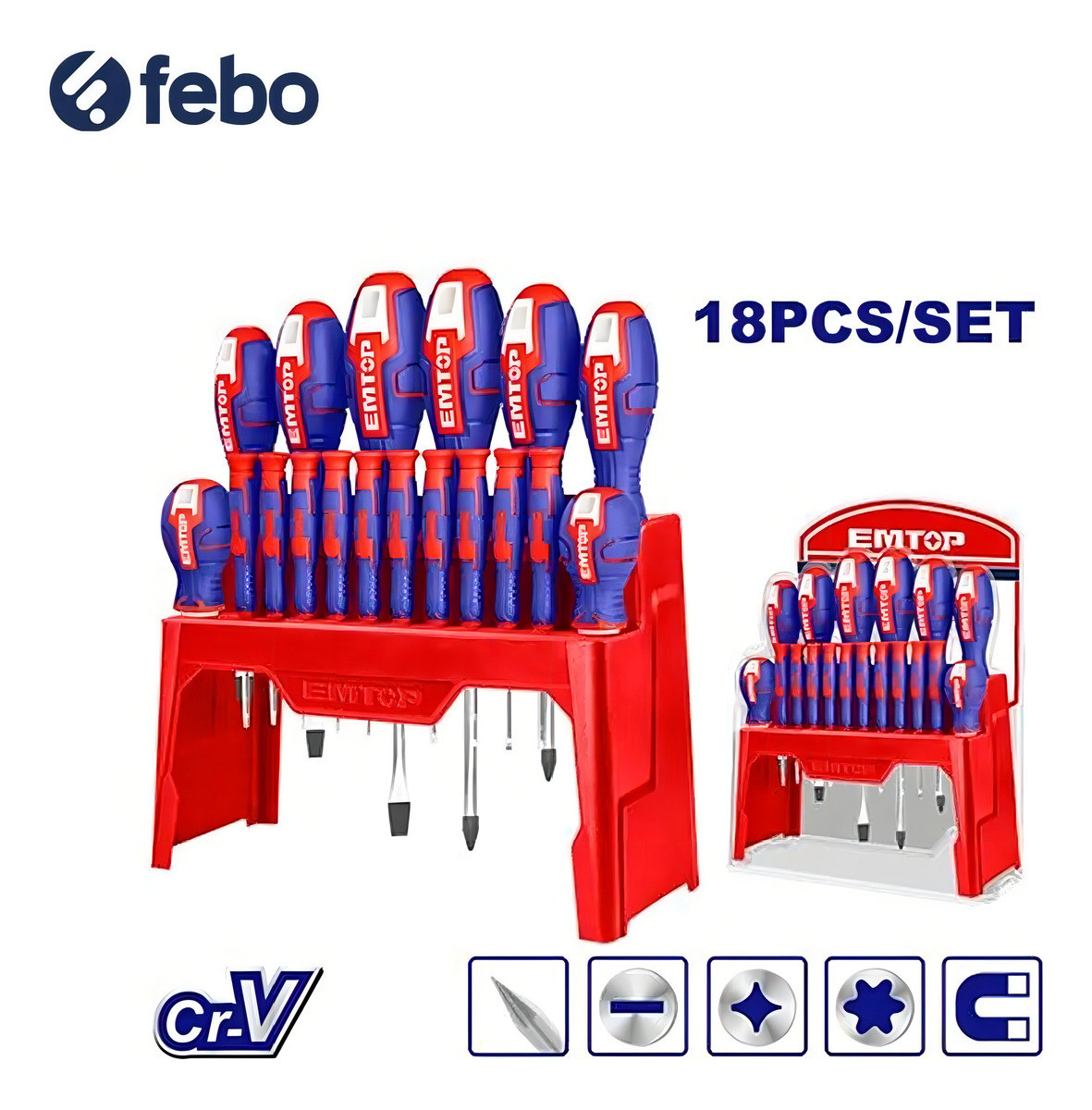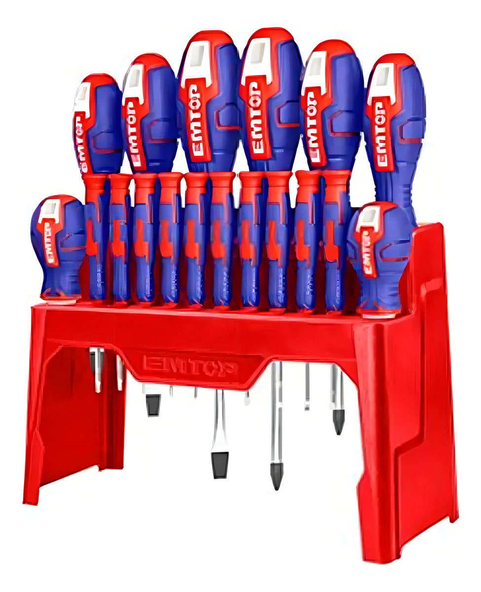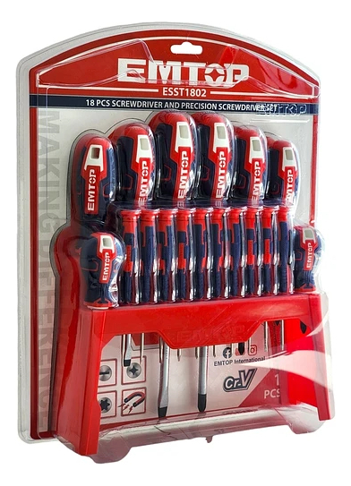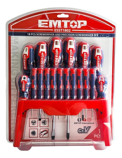 JUEGO DE 18 DESTORNILLADORES EMTOP CON ORGANIZADOR DE PLÁSTICO ESST1802