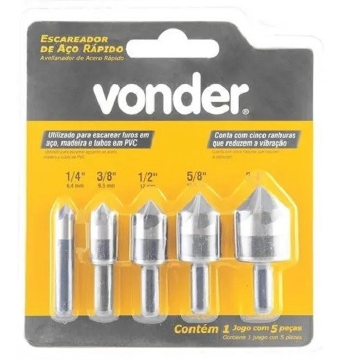 1 juego con 5 avellanadores, siendo: 1/4 «- 6,4 mm, 3/8» – 9,5 mm,