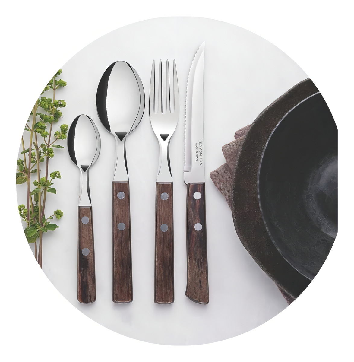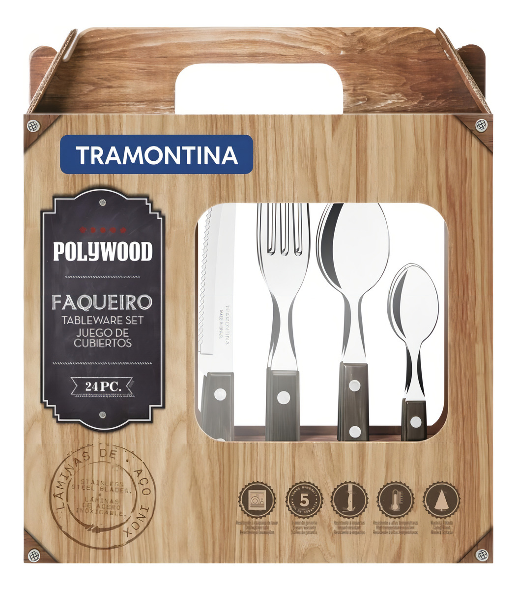 Juego Cubiertos 24 Piezas Polywood – Tramontina Marrón