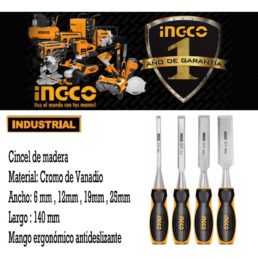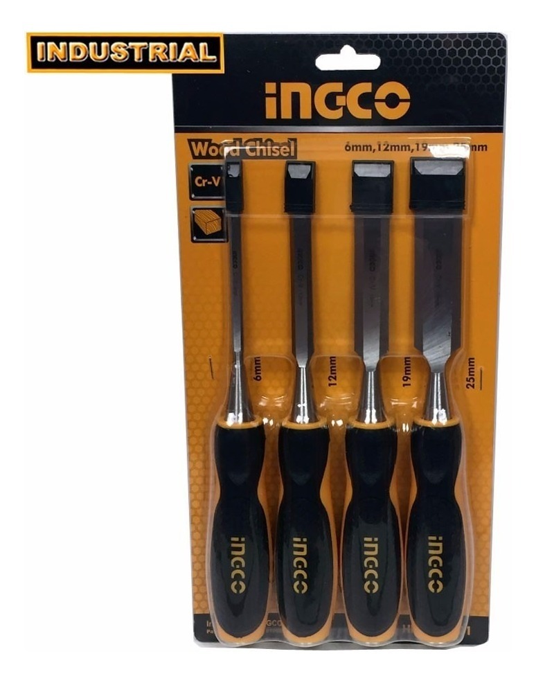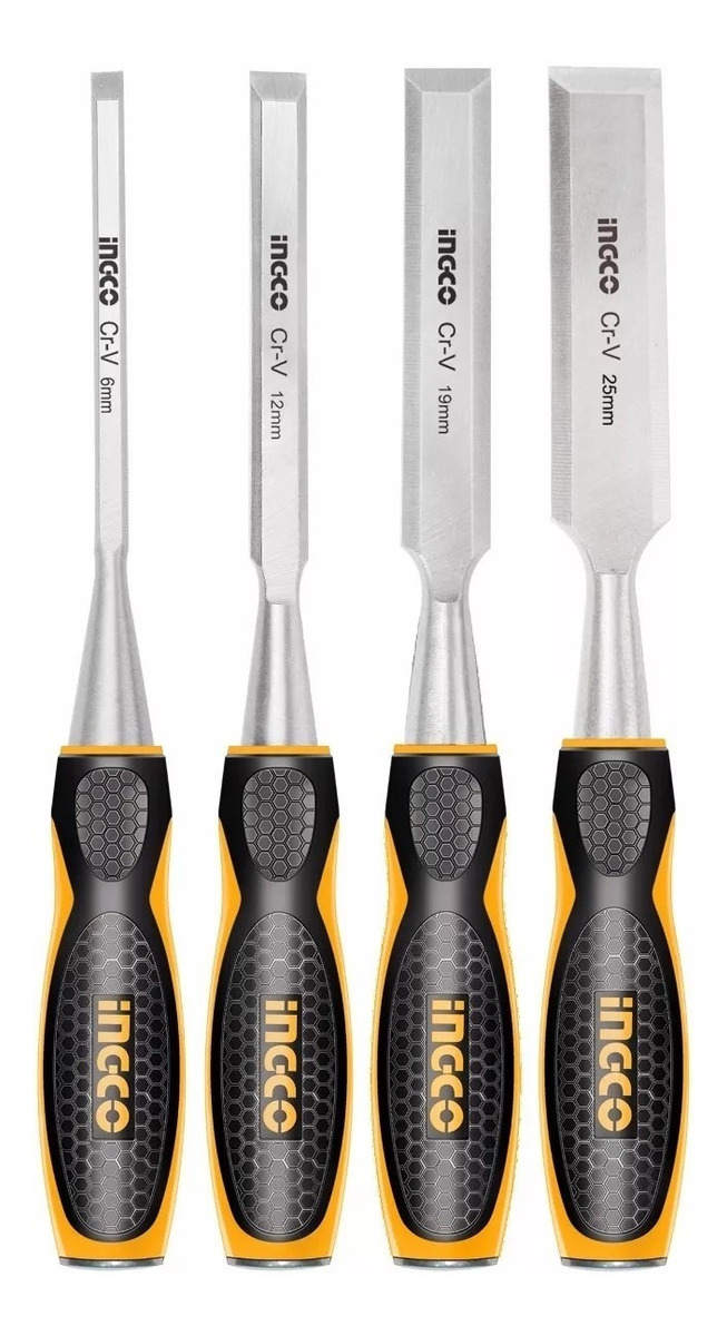 Juego De Formones 4 Piezas 6 A 25 Mm 140mm Ingco Hktwc0401