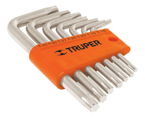 El set está compuesto por 7 llaves Torx de diferentes medidas: T-10, T-15, T-20, T-25, T-27, T-30 y T-40.