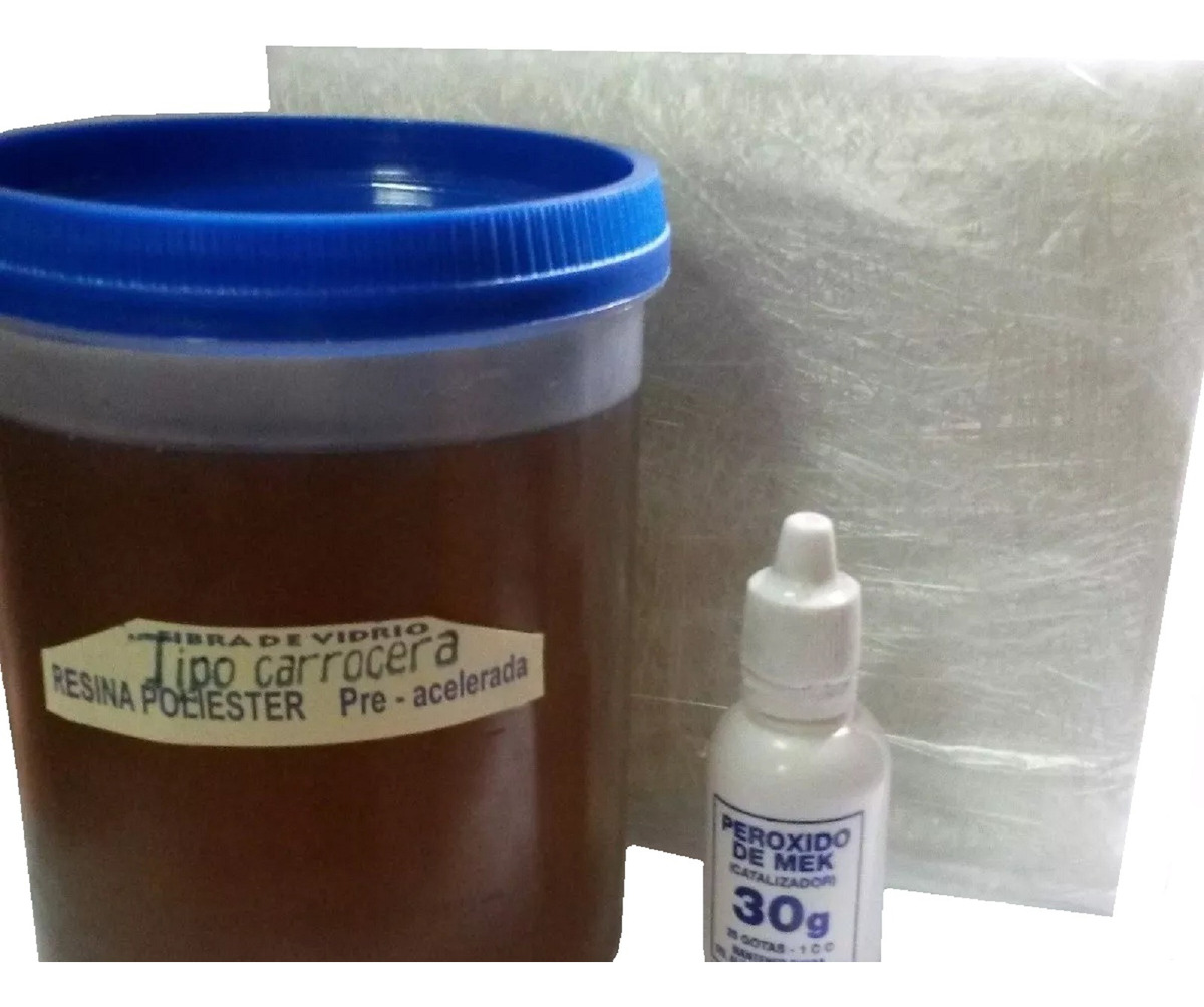 está compuesto por: 1kg de resina poliester carrocera, 1m2 de fibra t300 y 30g de catalizador