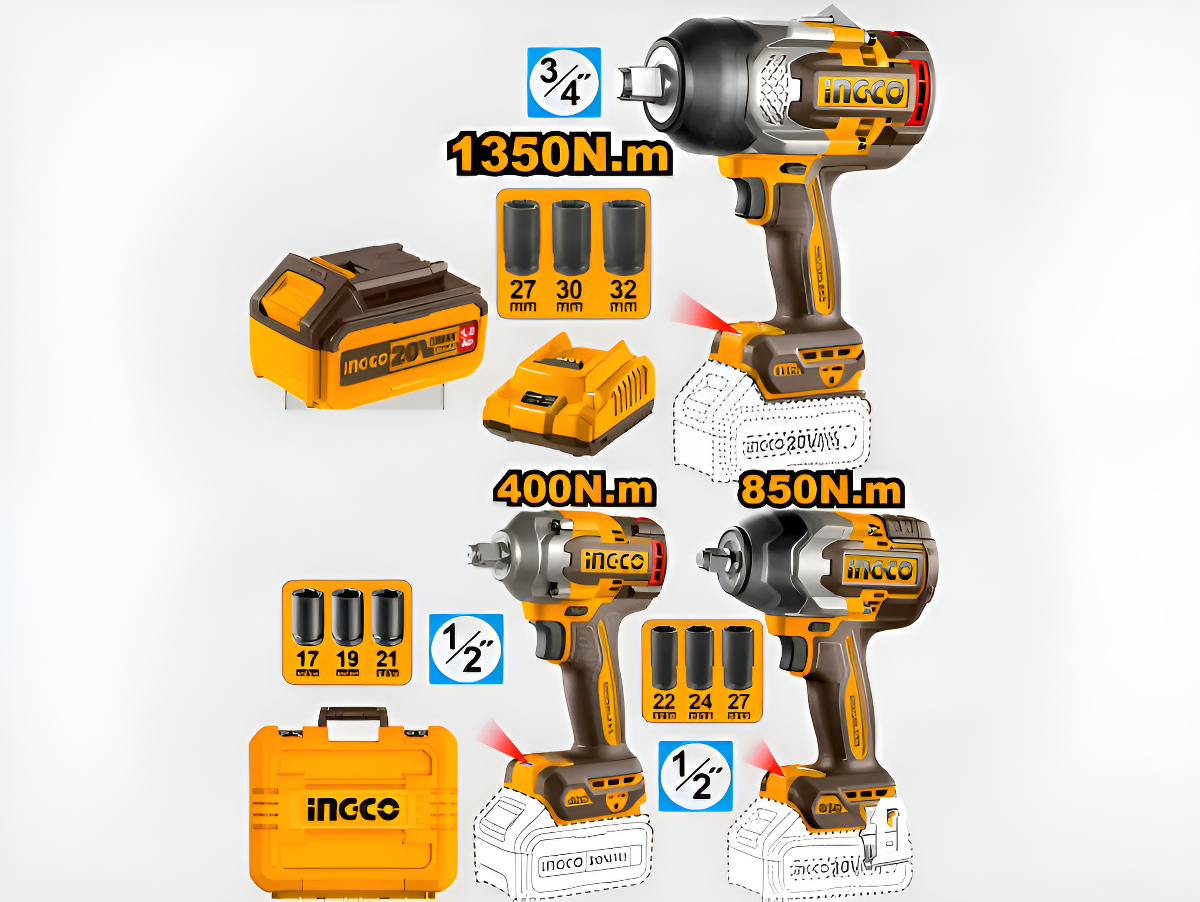 Kit 3 Llaves De Impacto 1350nm +850nm +400nm +2bat 5ah Ingco