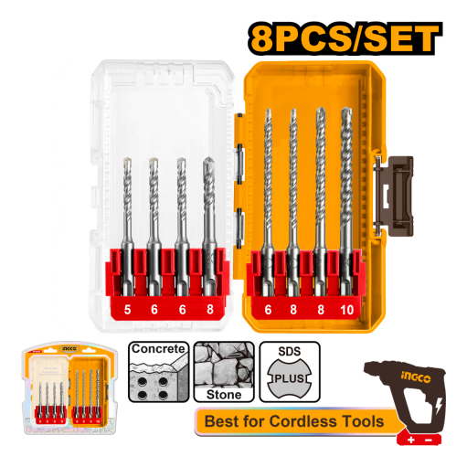KIT 8 PIEZAS MECHAS PARA ROTOMARTILLO SDS PLUS INGCO AKDL11806