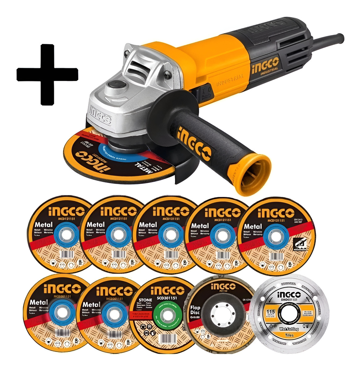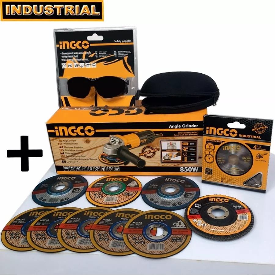 Kit Amoladora Ingco Industrial 950w +10 Discos + Lentes
