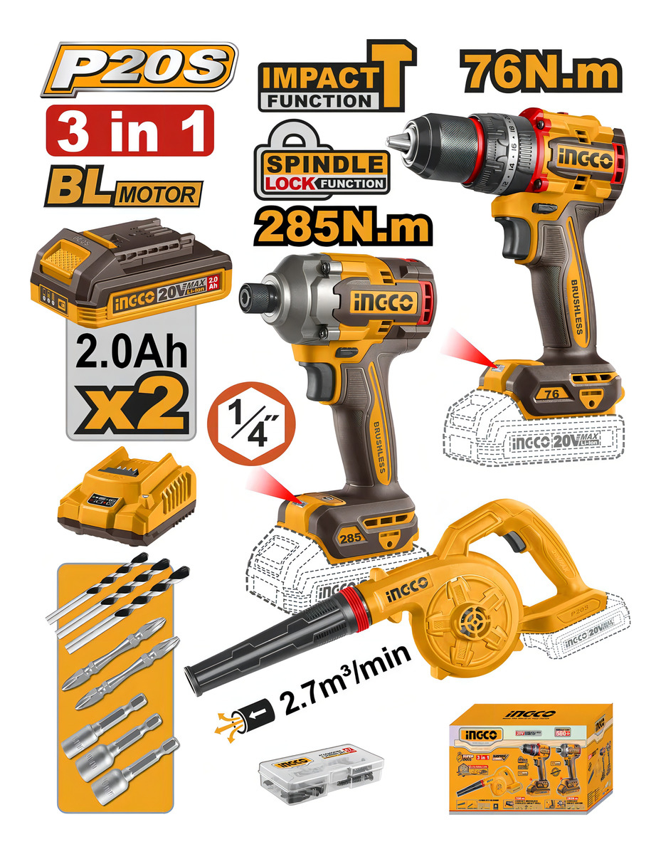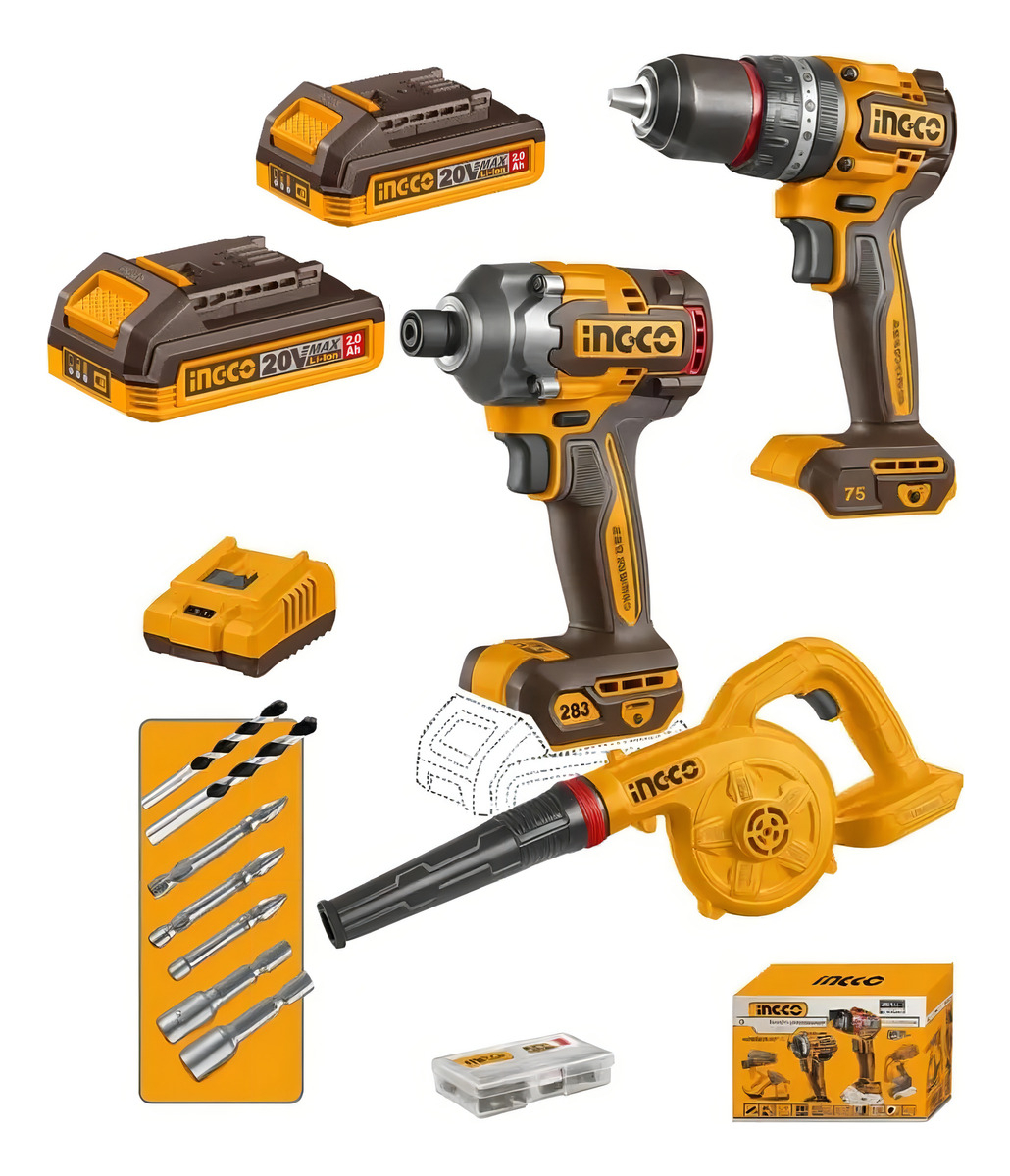 Kit Atornillador De Impacto Taladro Percutor Soplador Ingco cantidad
