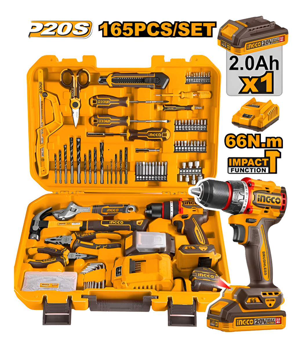 KIT ATORNILLADOR PERCUTOR 20V (cidli20668) EN VALIJA C/BAT Y CARGADOR + 165 HERRAMIENTAS