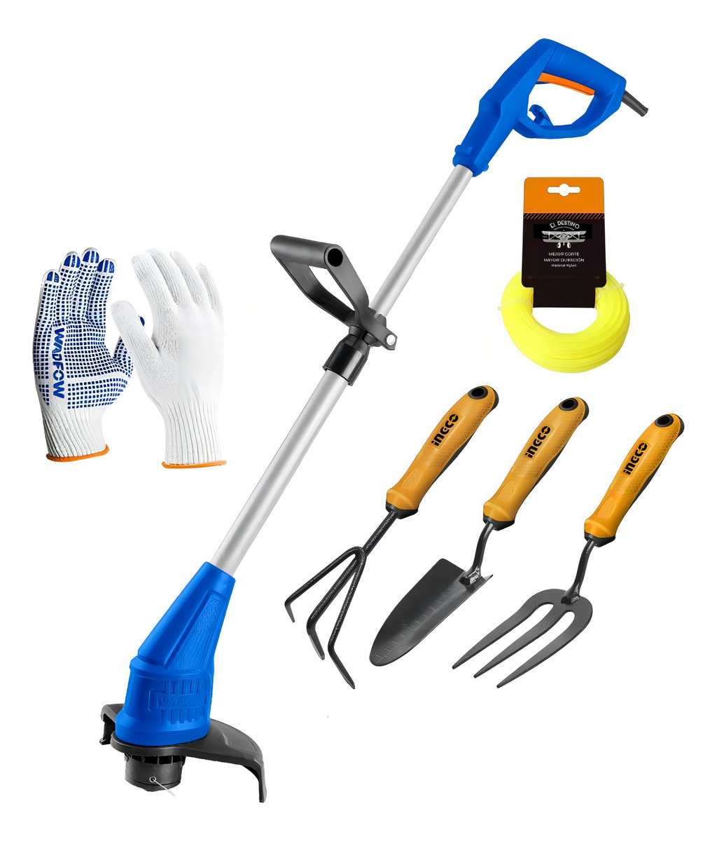| Accesorios incluidos | Bordeadora, Pala, Rastrillo fino, Rastrillo grueso, Tanza |