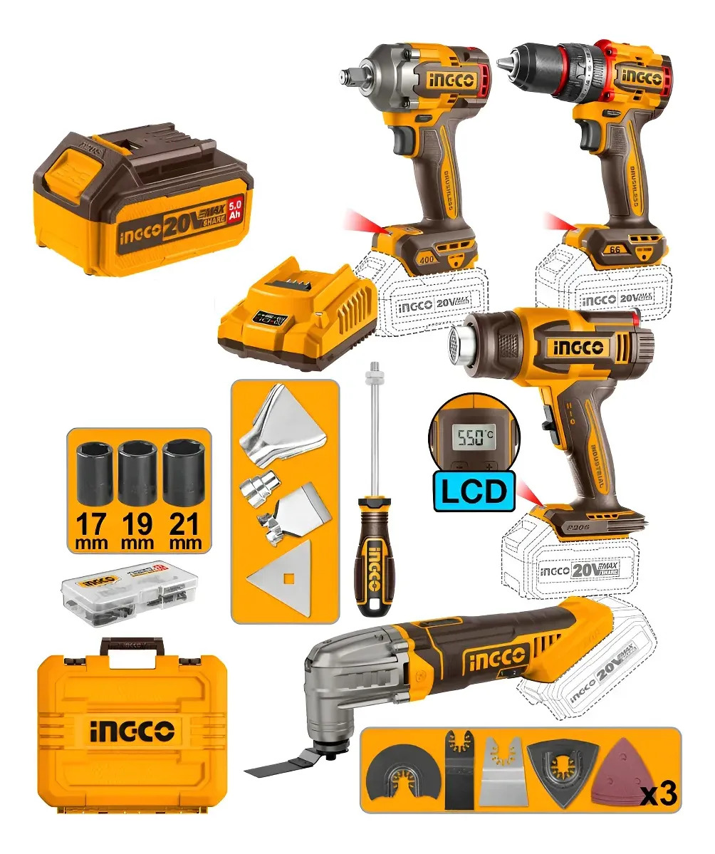 Kit Combo Crique 20v Pistola Calor Linterna + Baterias Ingco