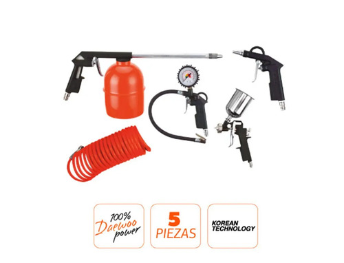 Kit Compresor 5 Piezas Metálico Pintar Inflar Limpiar DAEWO