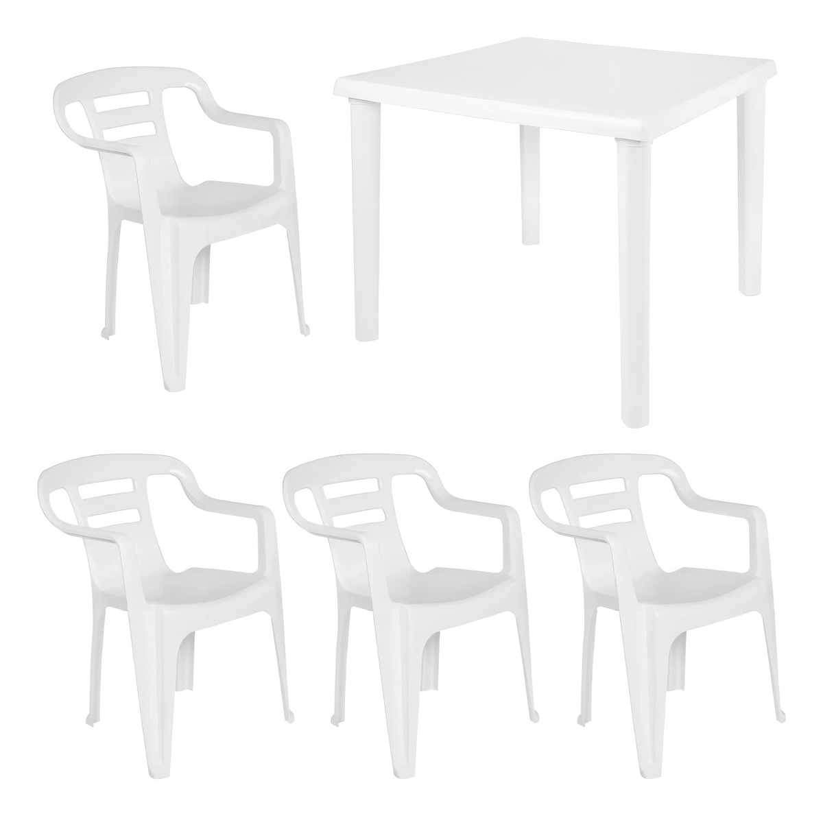 Este kit de mesa y silla de plástico blanco ofrece un conjunto práctico y versátil para tu comedor o espacio exterior. Con su diseño elegante y fácil de limpiar, es ideal para cualquier ocasión.