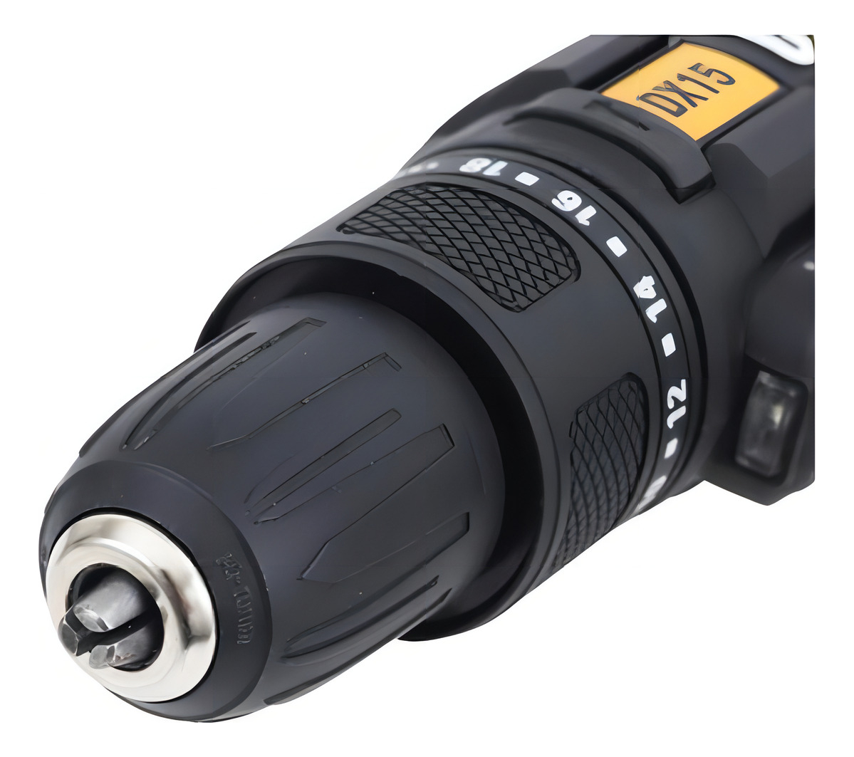 Con su batería de litio de 2,0 Ah y su cargador rápido incluidos, este taladro está listo para usarse de inmediato. Su diseño súper compacto y ergonómico convierte a la DX15 en una opción ideal para trabajar en espacios limitados y de difícil acceso.