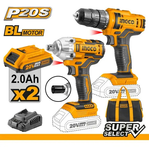 Kit Llave Impacto 20v Y Atorn. 20v P20s Ckli2017 Ingco *ub* Color Anaranjado