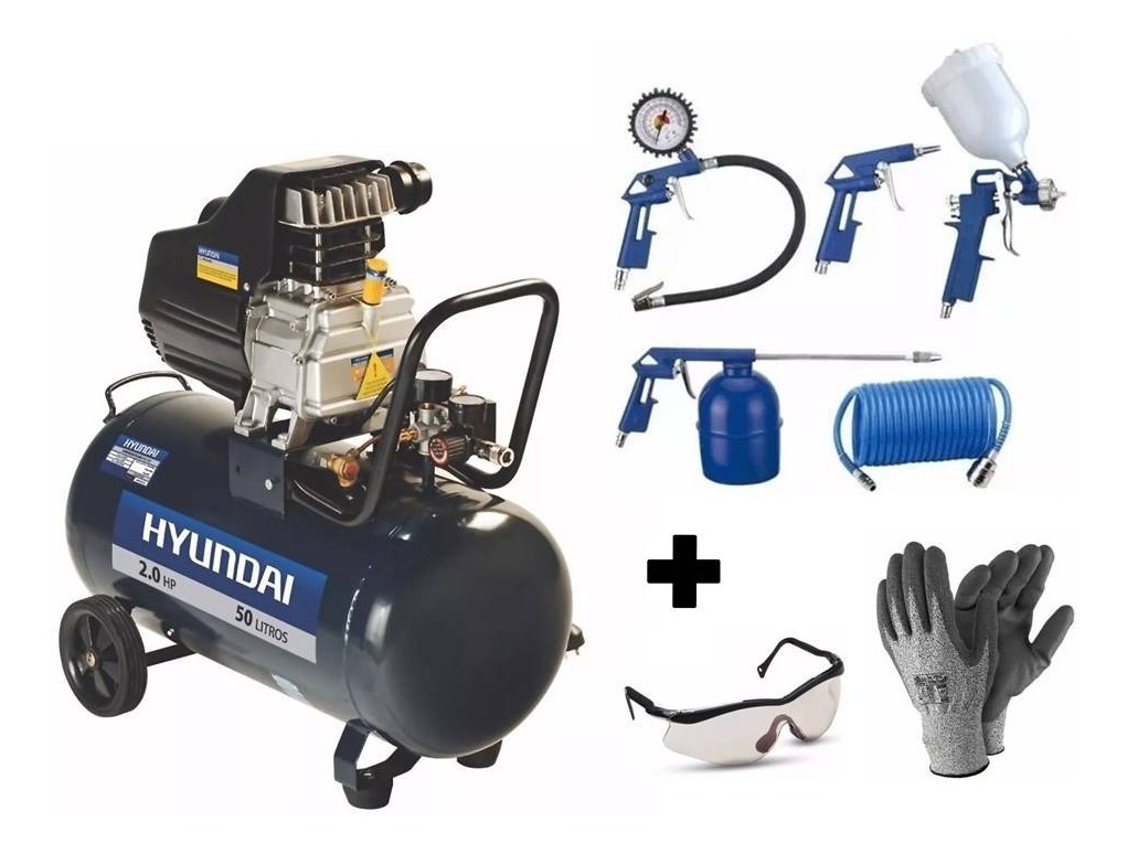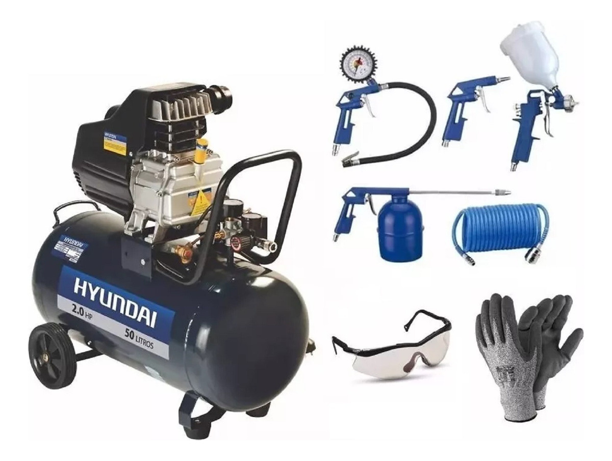 Kit Motocompresor Hyundai 50 Lts. 2 Hp Hyac50 + Kit 5 Piezas + Obsequios!