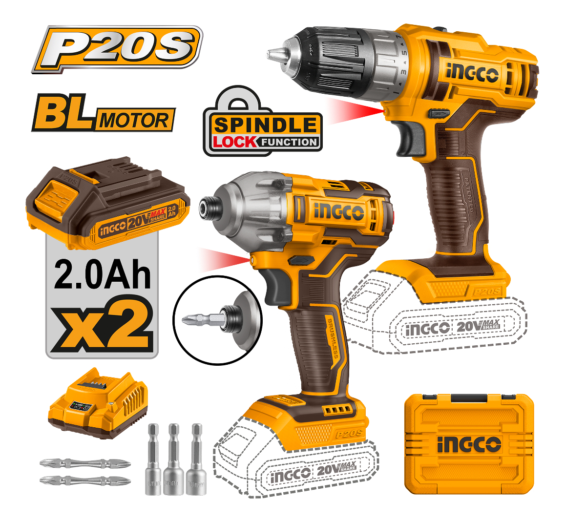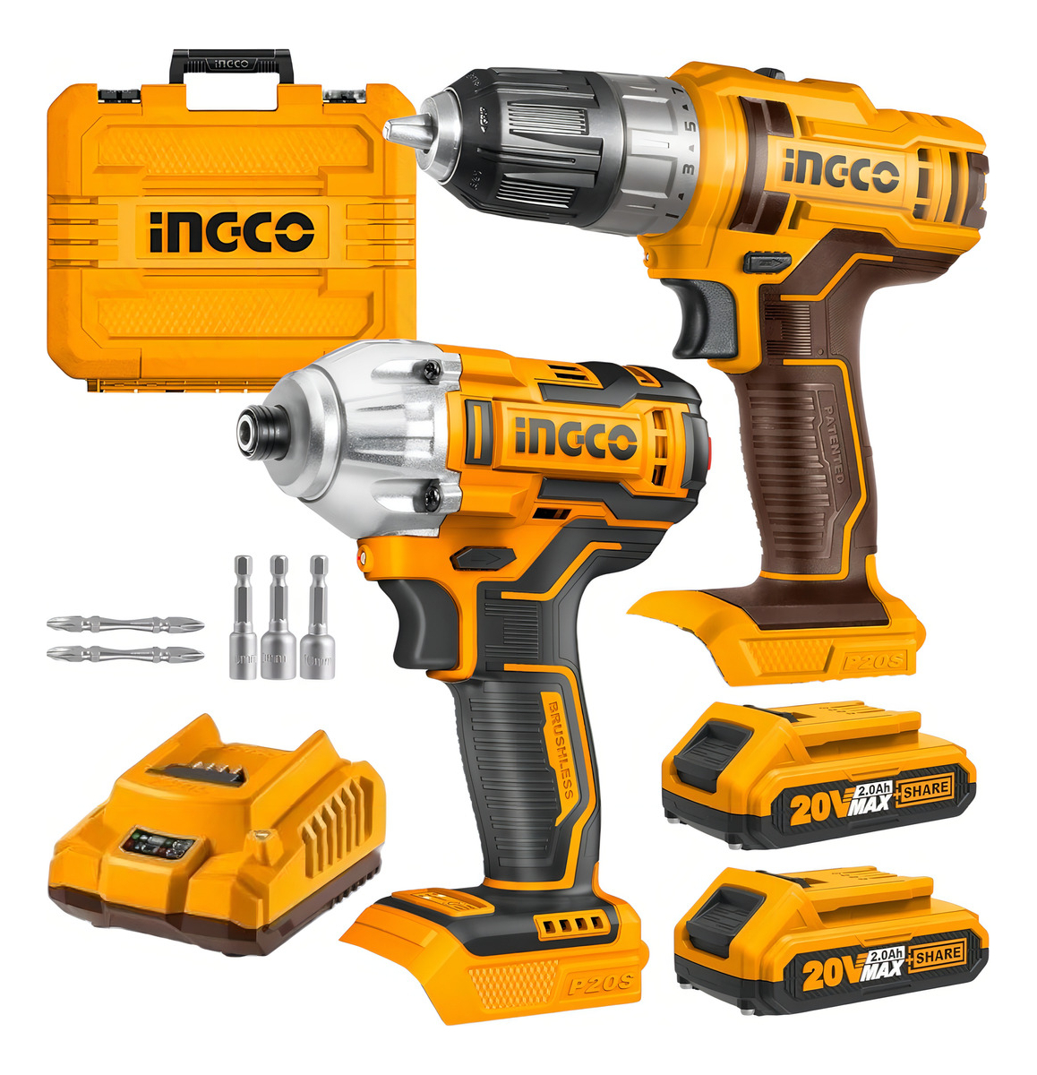 Kit Taladro Inalambrico Y Atornillador Impacto Ingco Color Amarillo