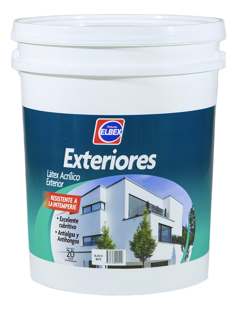 Látex Exterior Elbex Blanco Mate 20l Resistente Intemperie cantidad