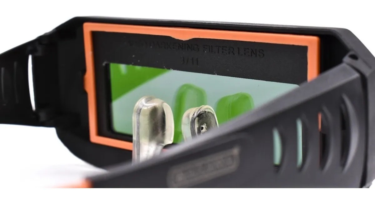 *La pantalla se oscurece durante la soldadura, protegiendo así los ojos de posibles lesiones.