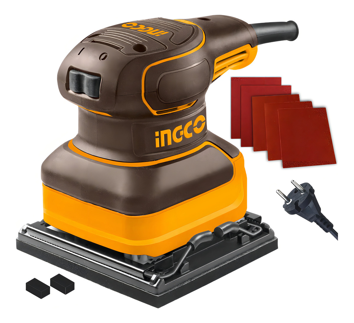 Descubre la Lijadora Orbital Ingco PS2416, ideal para tus proyectos de bricolaje y acabados profesionales. Con una potente entrada de 240W y un voltaje de 220-240V a 50/60Hz, esta lijadora ofrece una velocidad en vacío impresionante de 14,000 rpm, garantizando resultados rápidos y eficientes. Su base inferior de 110mmx100mm permite un lijado preciso en diversas superficies. Además, incluye 5 piezas de papel de lija para comenzar tu trabajo de inmediato, así como un juego extra de escobillas de carbón para prolongar su vida útil. Diseñada para facilitar el manejo, cuenta con un colector de polvo que mantiene tu espacio de trabajo limpio, y su sistema con velcro asegura un cambio rápido y sencillo de las hojas de lija. Haz que tus proyectos sean más fáciles y rápidos con la confiabilidad y calidad de Ingco.