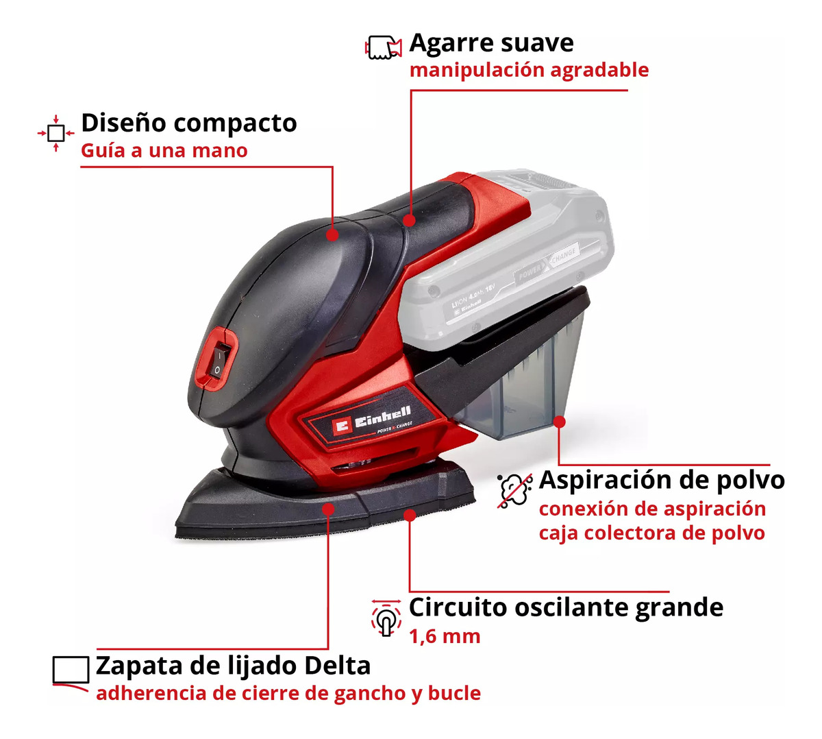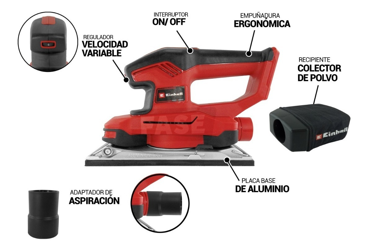La lijadora orbital con batería TE-OS 18/230 Li Solo de Einhell es un potente miembro de la familia Power X-Change. La lijadora orbital robusta y potente es perfectamente apropiada para el lijado de superficies planas, por ejemplo, piezas de trabajo, tarimas o revestimientos de madera y recubrimientos. Gracias a la adherencia, los medios abrasivos se pueden cambiar de forma sencilla y rápida. La bolsa colectora acumula el polvo de lijado producido. Además, la posibilidad de conectar un aspirador ofrece máxima limpieza en la superficie de trabajo. El envío se realiza inclusive con tres papeles de lija para el inicio inmediato del proyecto.