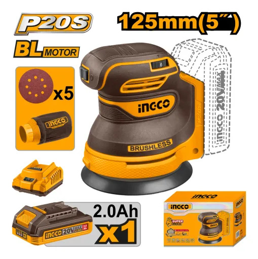 LIJADORA ROTO ORBITAL A BATERIA P20S 20V CON 5 LIJAS + BATERIA Y CARGADOR