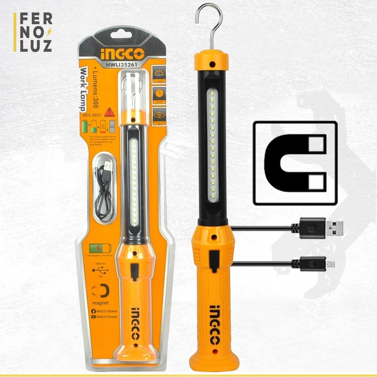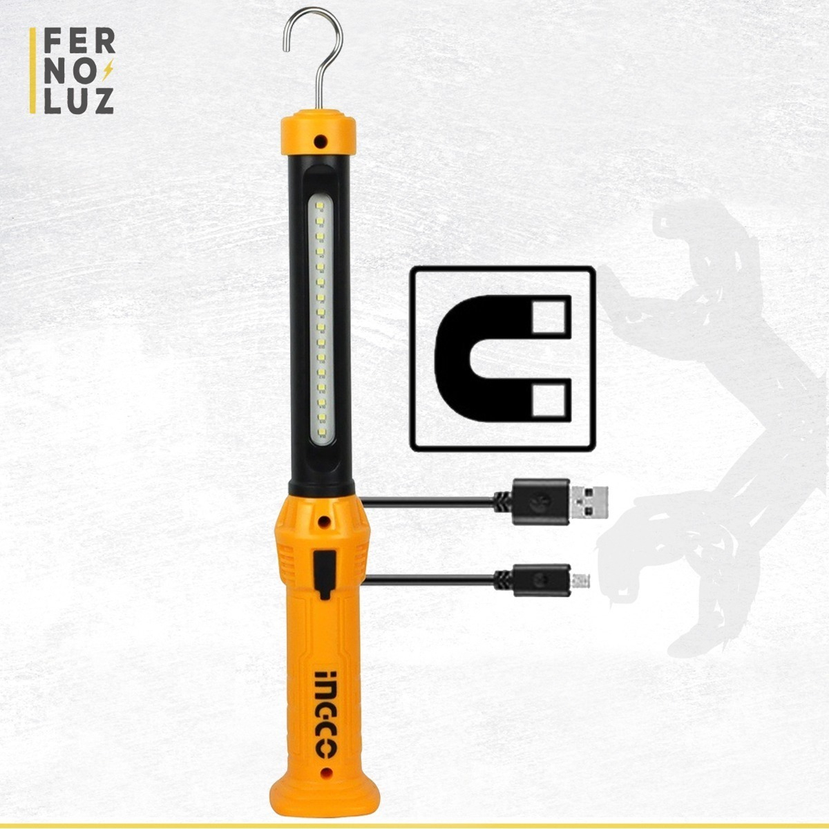 Linterna Lampara Magnética Recargable Ingco Hwli35261 *ub* Color De La Luz Blanco