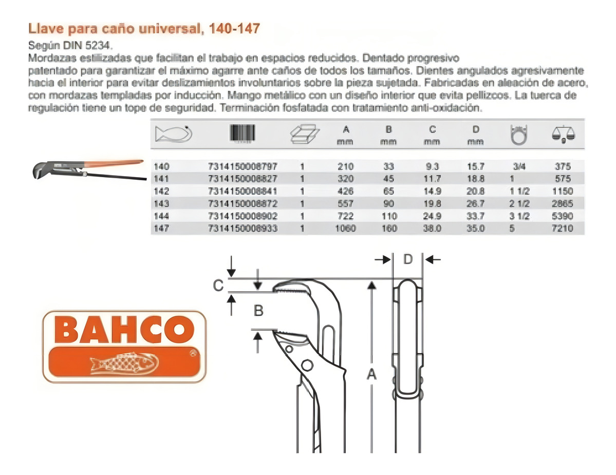 Llave De Caño 0-52mm Modelo 142 Bahco – Tyt