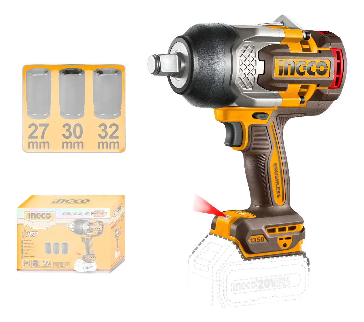 Llave De Impacto 1350nm Sin Batería 20v Ingco Ciwli13501 cantidad