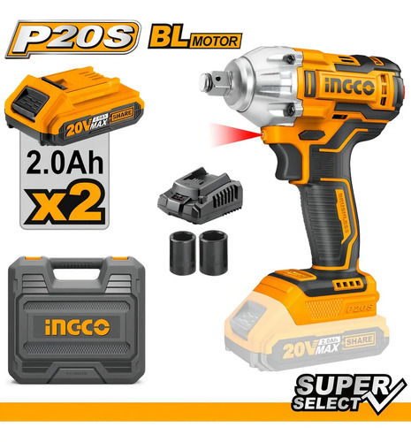Llave De Impacto C/2 Bat Y Maletin Ingco Ciwli2038 Color Amarillo