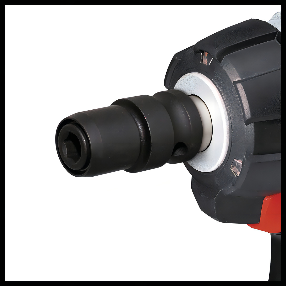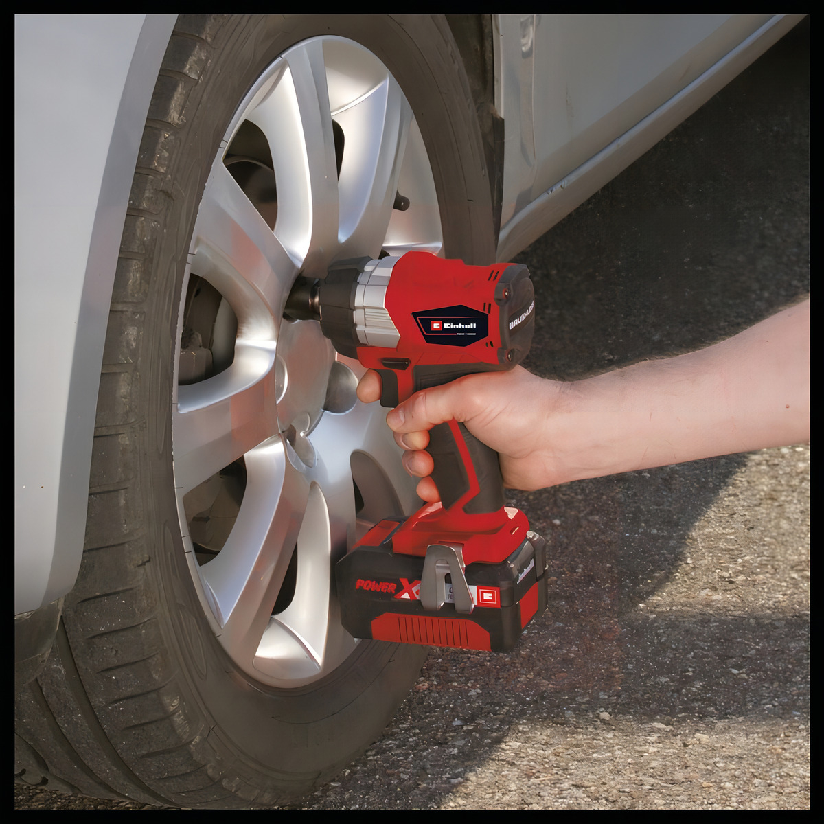La llave de impacto sin cable Einhell TE-CW 18 Li BL-Solo es el complemento ideal para el cuidado y mantenimiento domestico de los vehiculos del hogar. En lugar de invertir tiempo y energía en el cambio de llantas en primavera y otoño, las tuercas se pueden aflojar con esta práctica herramienta en un abrir y cerrar de ojos. La potente llave de impacto ofrece una alternativa cómoda a un aflojamiento manual laborioso. Con el motor sin escobillas, la llave de impacto proporciona una potencia mayor y una vida útil más larga que la de un motor convencional de escobillas de carbono. Además, la llave de impacto a batería forma parte de la familia Power X-Change: la batería con tecnología de iones de litio de alta calidad y un cargador puede utilizarse en todos los modelos Power X-Change. La ventaja es obvia: Los cables molestos, el riesgo de tropezar y las deformaciones no deseadas debidas al espacio limitado para el movimiento ahora son cosa del pasado gracias a la nueva, potente y duradera generación de herramientas a baterías de Einhell. Esto permite un trabajo rápido y seguro en todas las ruedas. El alto par de torsión de la poderosa llave de impacto a batería proporciona la potencia suficiente para aflojar las tuercas agarrotadas, encajadas u oxidadas en un instante. A pesar de su potencia, la TE-CW 18 Li BL-Solo es ligera por su calibre y, por lo tanto, fácil de manejar. La llave de impacto tiene una robusta recepción de cuadrado exterior de 1/2″, y en el envío se incluye un adaptador de brocas para atornillar. La luz LED integrada para iluminar el área de trabajo también permite un cambio rápido de llanta si se da el caso: al anochecer, en la oscuridad o en garajes sin la iluminación adecuada. Se suministra sin batería ni cargador (se venden por separado).
