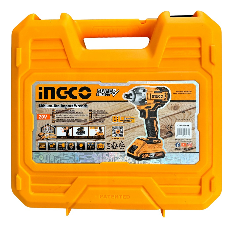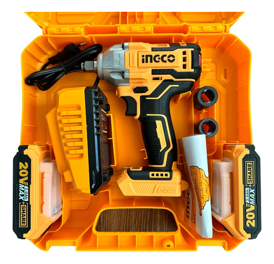Llave De Impacto Ingco Ciwli2038 Inalámbrica 1/2 300nm Color Amarillo Frecuencia 50 Hz