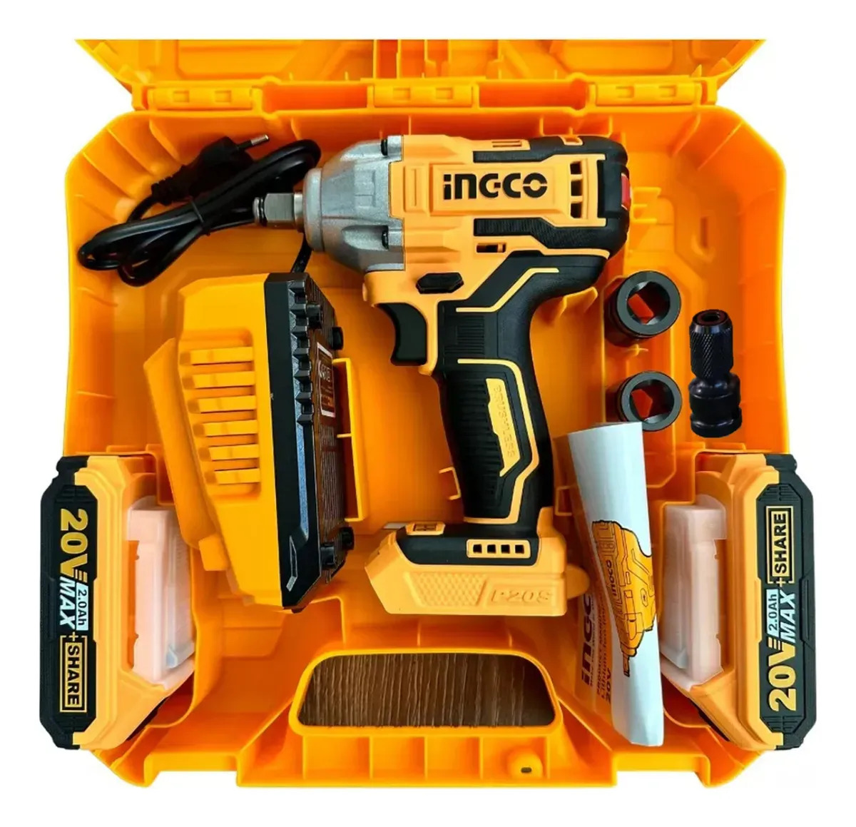 Llave De Impacto Y Atornillador 20v Ingco 2 En 1 +2 Baterías