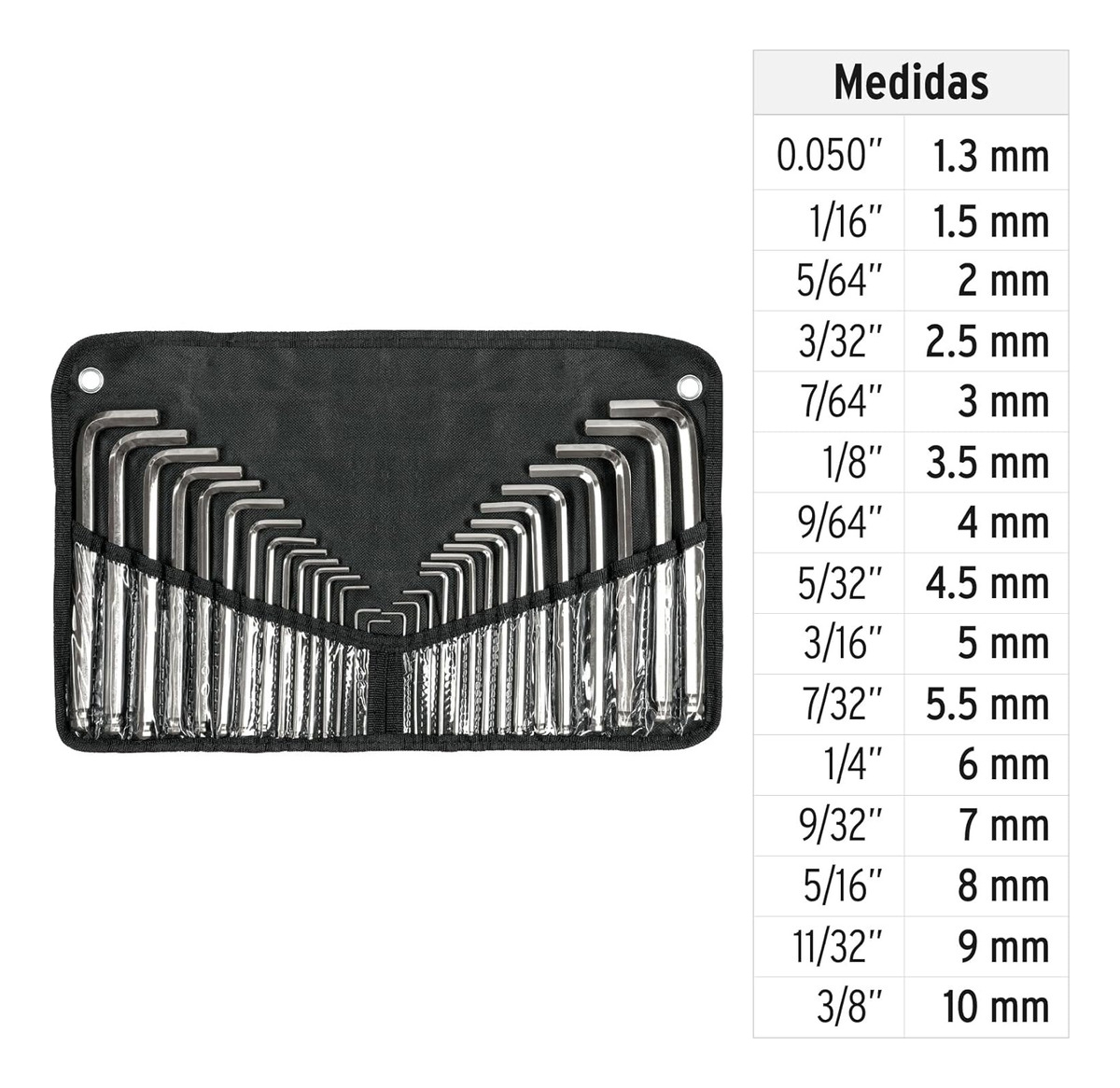 Con extremos biselados y caras rectificadas, estas llaves Allen garantizan un excelente acoplamiento y facilitan el trabajo en espacios reducidos. Además, vienen en tamaños estándar y milimétricos, lo que las convierte en una opción versátil para cualquier proyecto. El estuche incluido permite mantener las llaves organizadas y protegidas, evitando su pérdida o daño.