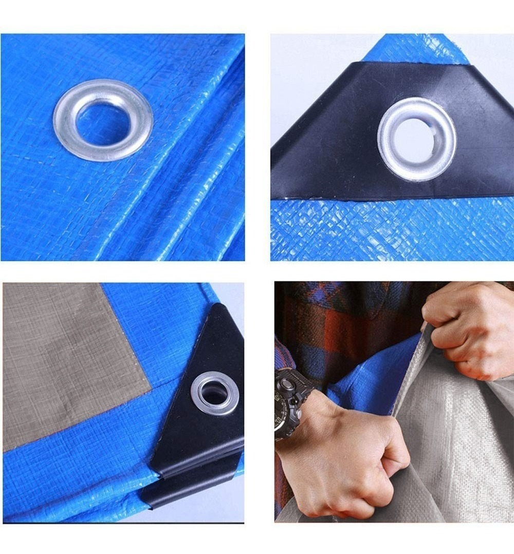 Este producto es una lona impermeable con protección UV. Sus medidas son de 2m x 3m. Está confeccionada en PE, lo que la hace resistente al moho y las rasgaduras. Cuenta con protección incorporada contra el sol y los rayos ultravioletas. Los ojales son de aluminio inoxidable y se encuentran cada 36 pulgadas. La costura es reforzada y las punteras están reforzadas con plástico. El peso de la lona es de 160g. El color exterior es celeste y el interior es blanco. Es perfecta para trabajar en exteriores, almacenar y proteger contra las inclemencias del tiempo.