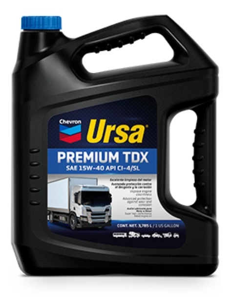 Ursa Premium TDX SAE 15W40 está recomendado para motores diesel de cuatro tiempos, de aspiración natural,sobre alimentados ó turbo alimentados de vehículos de transporte que operan en todo tipo de servicio. Permite el funcionamiento con intervalos de cambio extendidos,incluso utilizando combustible diesel (Gas Oil) con alto contenido de azufre. Es recomendado también para equipos pesados de construcción, minería, marítimos, equipos agrícolas y otras aplicaciones de servicio severo. Puede también ser usado en flotas mixtas, por cumplir con especificaciones para motores a gasolina de cuatro tiempos.