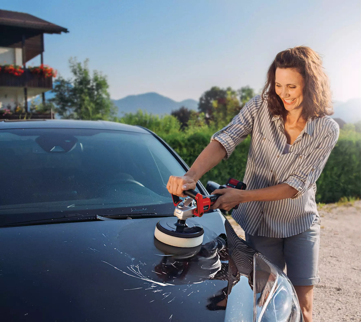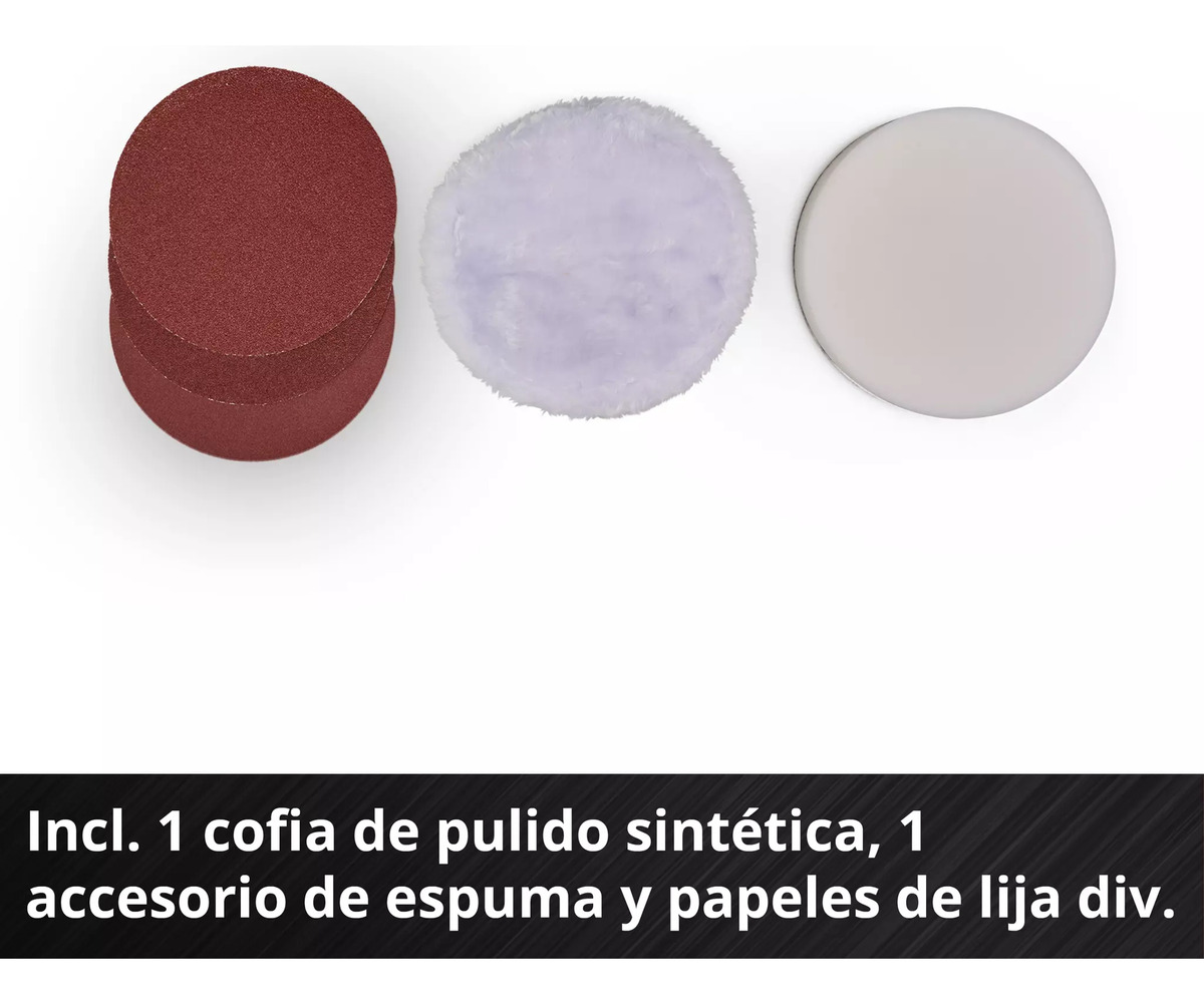 La pulidora y lijadora sin cable Einhell CE-CP 18/180 Li E-Solo ofrece al usuario la libertad de trabajar sin cable en el hogar, el taller y el garaje. La pulidora/lija sin cable es un miembro de la serie Power X-Change, por lo que las baterías recargables de esta serie de sistemas pueden utilizarse en todos los dispositivos PXC. La pulidora/lija sin cable funciona con un motor sin escobillas, un motor eléctrico de larga duración. El producto 2 en 1 lo hace posible: Pulir y lijar con una sola herramienta. Un gran disco de pulido con un diámetro de 180 milímetros permite un trabajo rápido. Gracias al control electrónico de la velocidad a través de la pantalla LCD, los aficionados al bricolaje pueden ajustar la velocidad a cada aplicación específica fácilmente y con sólo un vistazo. Para un manejo cómodo, cuenta con una empuñadura ergonómica para un agarre óptimo y un manejo controlado, así como con un diseño estilizado con empuñadura suave. El cierre de gancho y bucle permite cambiar rápidamente los accesorios. Para una fijación sin problemas del disco de pulido hay un sistema de bloqueo del eje. Para obtener resultados óptimos se recomienda el uso de la batería recargable de 2,5 Ah o superior de Einhell.