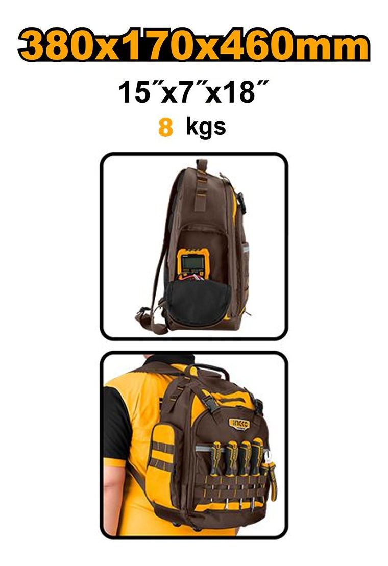 Maleta Espalda 45cm + 17 Bolsillos + Portahe Morral Maletin Color Marrón/naranja cantidad