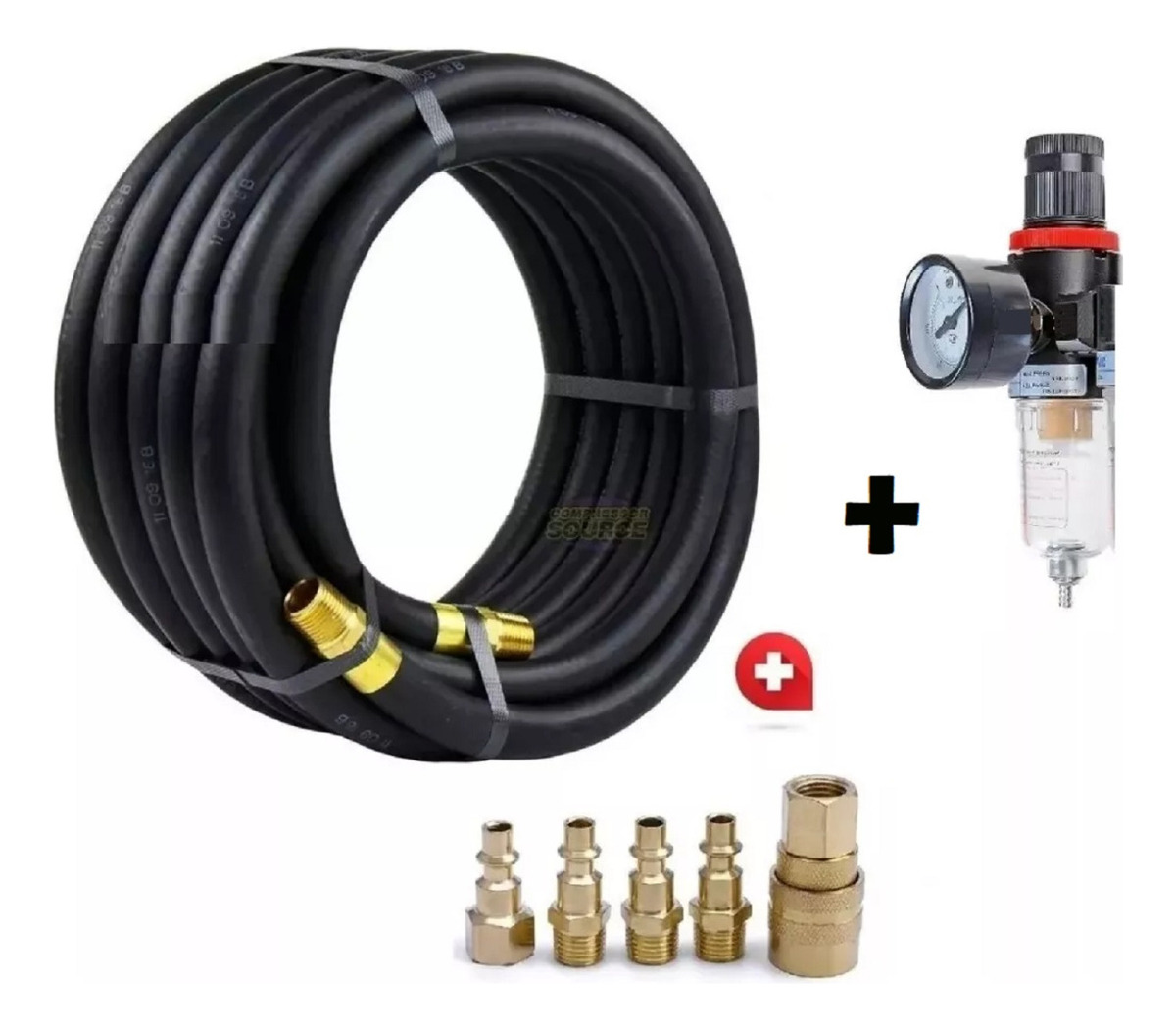 Manguera Compresor Reforzada 10 m – 3/8 + ACOPLES x 5 + Tampa de agua.