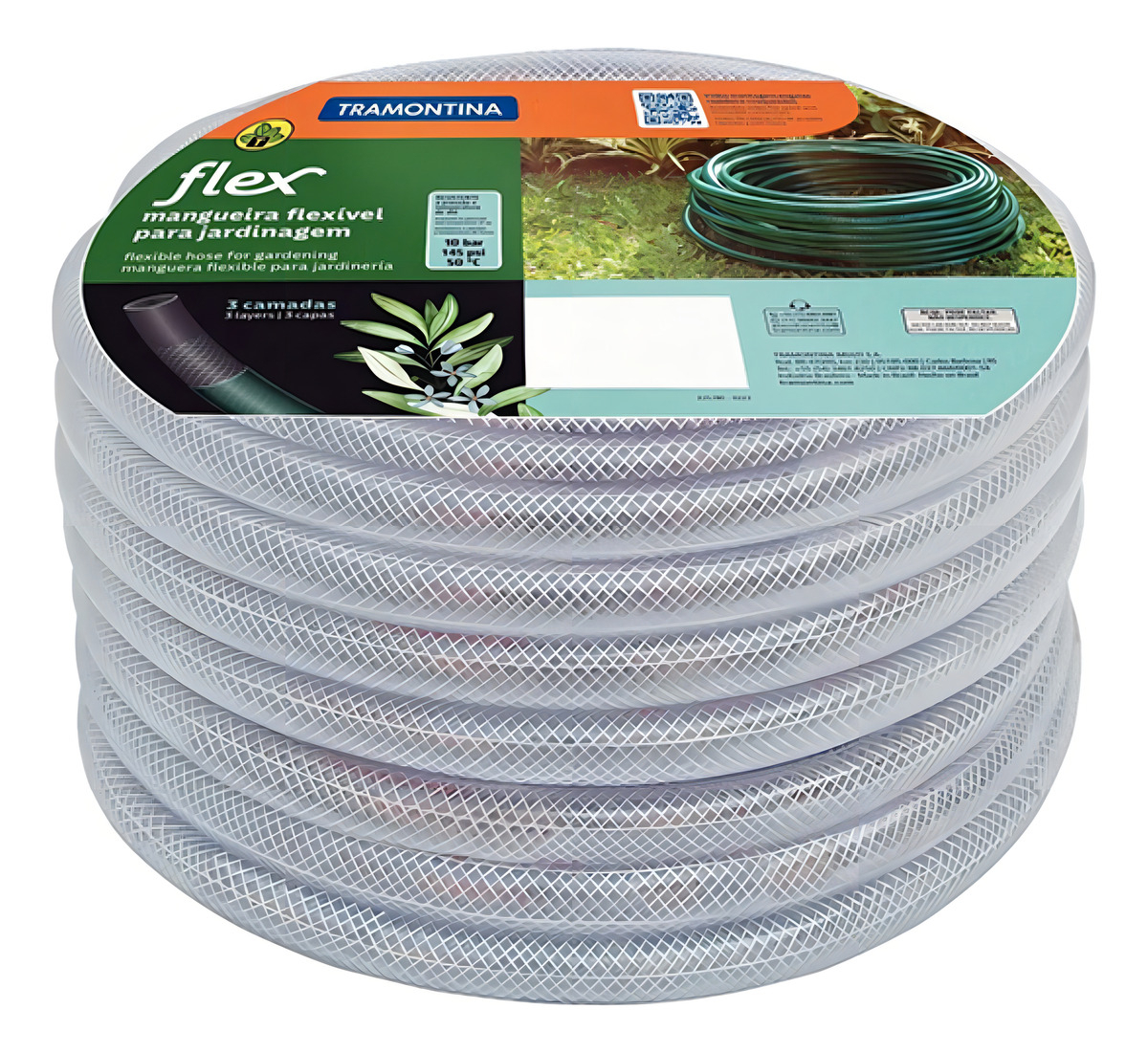 La Manguera Flex Trasparente Tramontina 3/4» Rollo X 50 Metros es la solución ideal para tus necesidades de riego y transporte de agua. Fabricada con un diseño de tres capas, esta manguera combina una capa interna de PVC que garantiza durabilidad, una intermedia de hilo poliéster trenzado que proporciona resistencia y una capa externa de PVC que protege contra el desgaste. Su diámetro de 3/4» la hace apta para diversas aplicaciones. Esta manguera es nueva y pertenece a la línea Flex de Tramontina, reconocida por su calidad. Soporta presiones de agua de hasta 10 bar (145 psi) y temperaturas de hasta 50°C, lo que la convierte en una opción versátil y confiable para cualquier proyecto. Con su diseño robusto y eficiente, esta manguera es perfecta para quienes buscan un producto de alto rendimiento y larga vida útil.