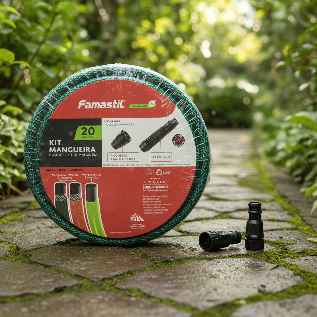 Manguera trenzada de 3 capas Famastil de 20 metros, diseñada para brindar resistencia, flexibilidad y durabilidad.