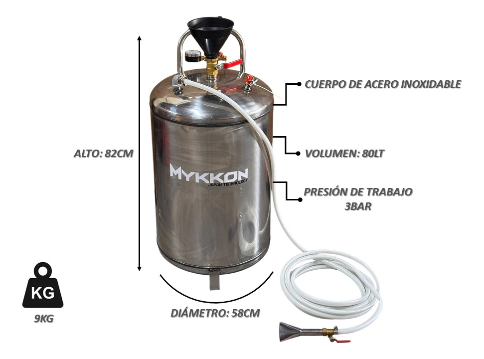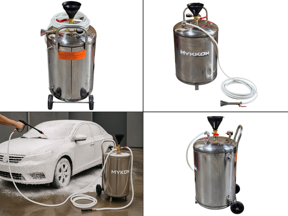 El espumador para autos 80LT Mykkon está diseñado para brindar una limpieza profunda y profesional en el lavado automotriz. Su estructura de acero inoxidable garantiza máxima resistencia, durabilidad y protección contra la corrosión, convirtiéndolo en una herramienta confiable para talleres, lavaderos y servicios de detailing.