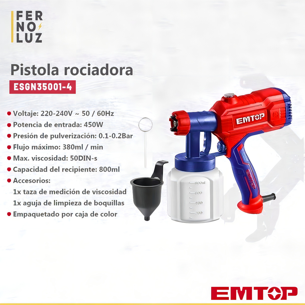 Pistola Para Pintar Látex Emtop 450w Pico De Bronce Modelo Esgn35001-4 cantidad