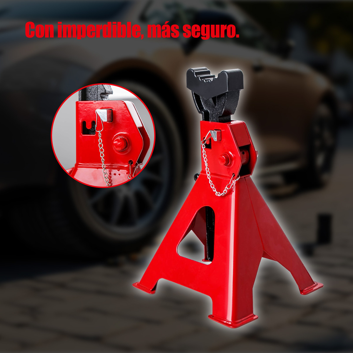 Palanca de bloqueo de trinquete: La palanca de bloqueo de trinquete ajustable se ajusta perfectamente al neumático del vehículo, evitando deslizamientos accidentales.