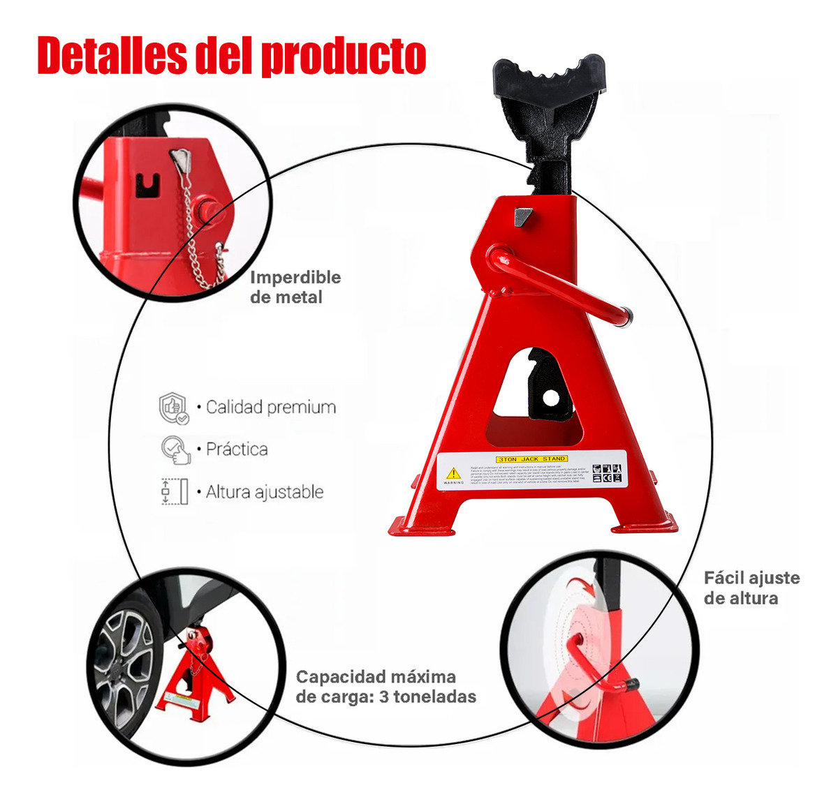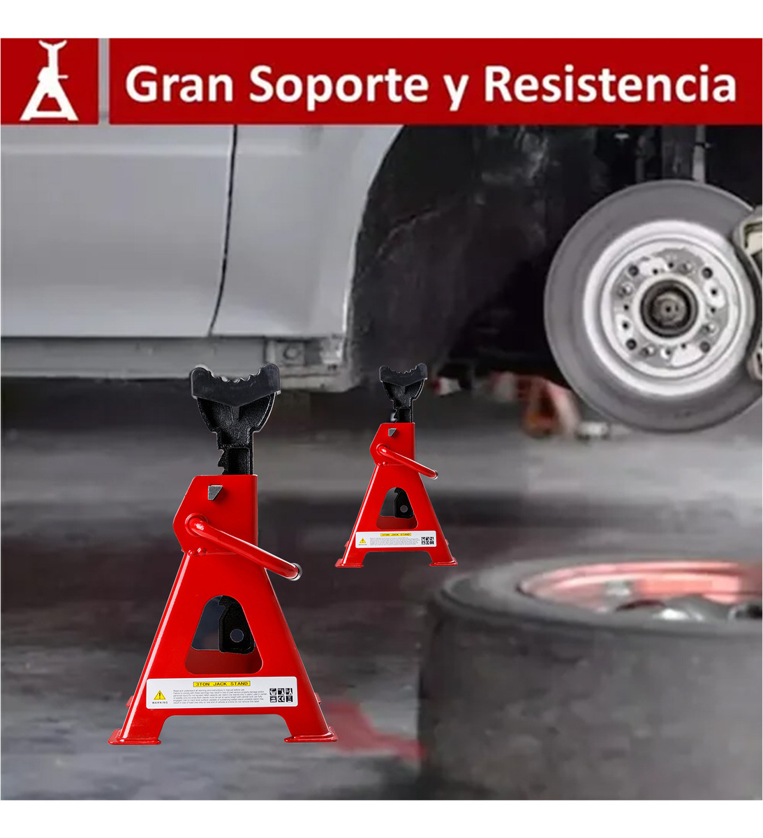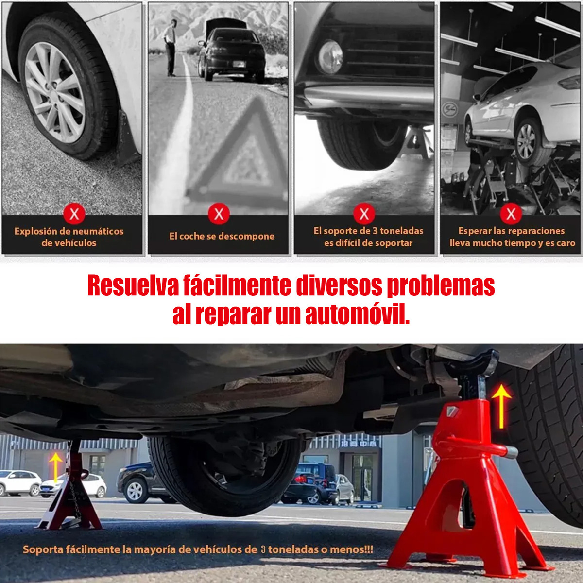 Información del embalaje: Un juego de torres de soporte para vehículos, cada una con una capacidad de 1,5 toneladas (en conjunto, pueden soportar hasta 3 toneladas).