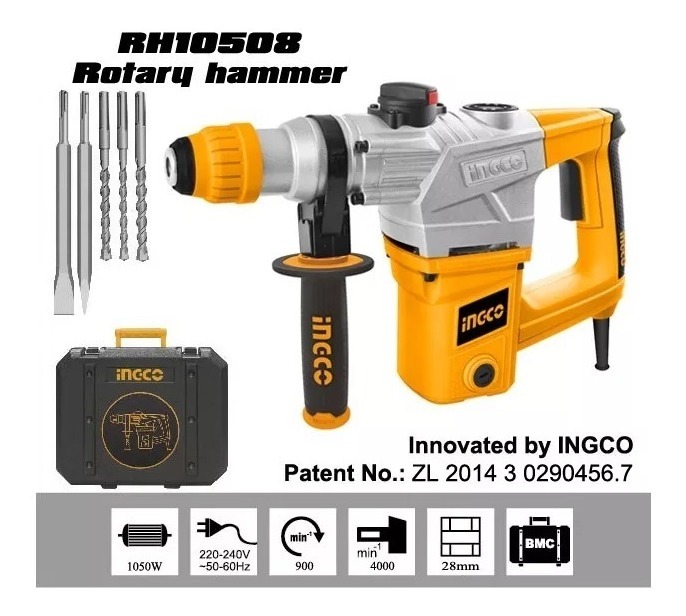 Mecha Rotomartillo Ingco 1050w Sds Plus + Maletín + Punta
