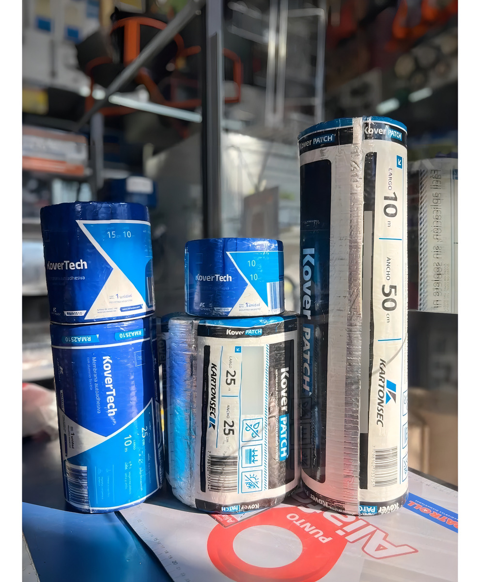 Las membranas asfálticas KoverTech autoadhesivas son elaboradas con asfalto modificado con polímeros termoplásticos con el agregado de aditivos que le otorgan propiedades adhesivas, dando por resultado asfaltos de excelente calidad, sin riesgo de quiebre a baja temperatura, ni escurrimientos a altas temperaturas y con excelente propiedad adhesiva sobre la mayoría de las superficies. El material antiadherente está siliconado, permitiendo una fácil remoción de la membrana. La terminación superficial es con aluminio flexible, elaborado con aluminio puro laminado con polímeros sintéticos de alta resistencia a la tracción.